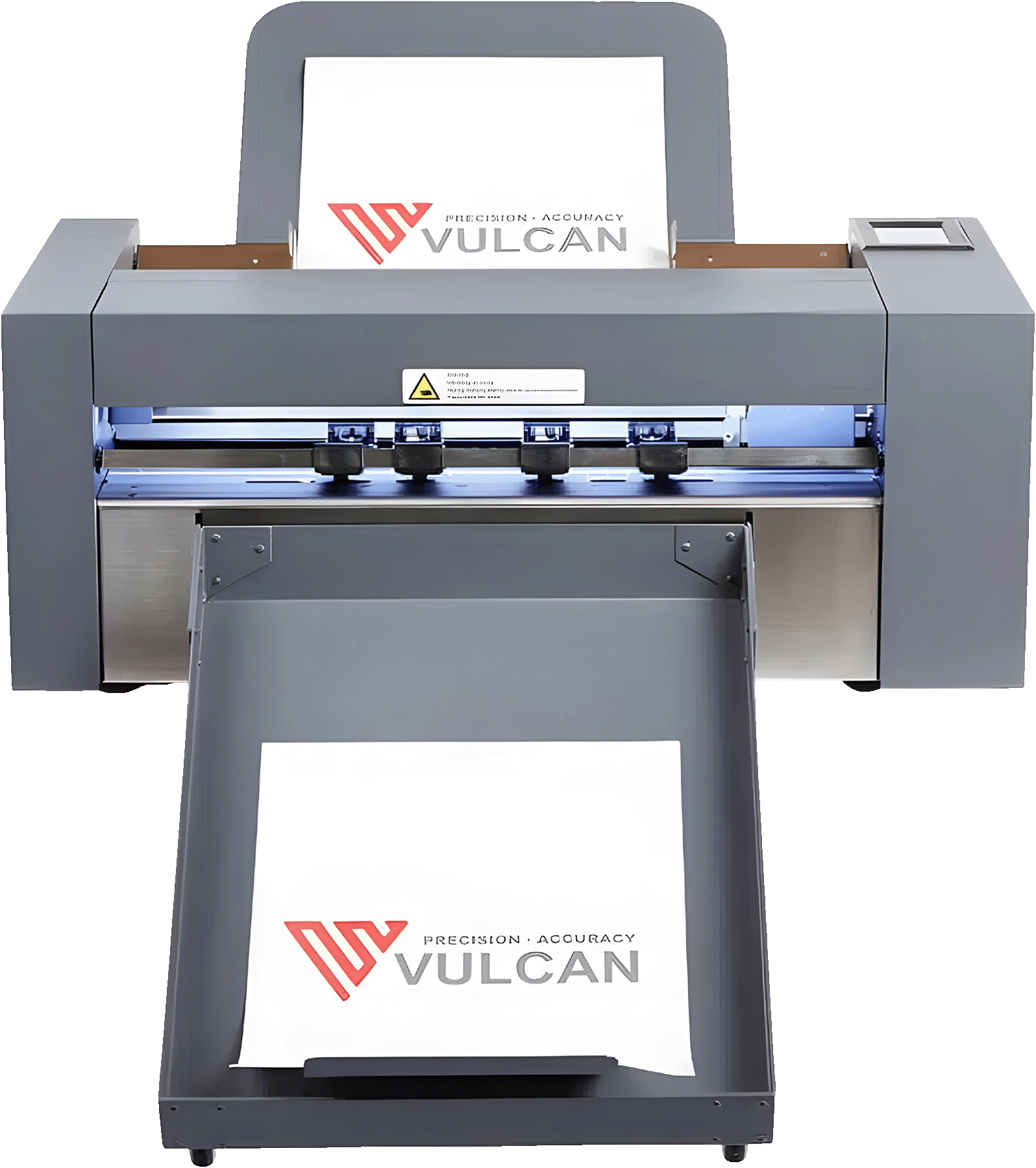 Plotterul de tăiere pe coli Vulcan SC-350 taie cu precizie stickere și etichete din coli cu dimensiuni de până la 350 mm x 500 mm.